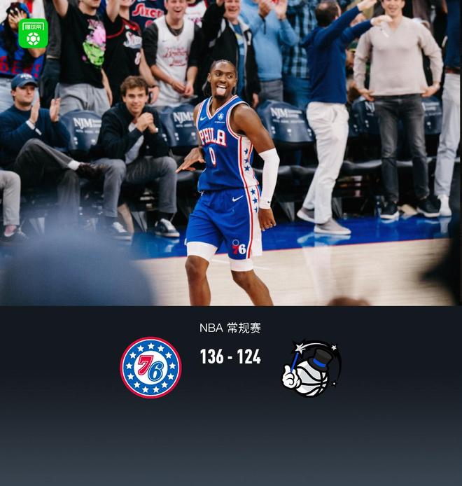 北京时间10月28日,NBA常规赛期间,费城76人队对阵奥兰多魔术队。半场结束76人72-60领先魔术,最终76人136-124领先魔术。费城76人队的马克西得到43分、4个篮板和8次助攻,VJ埃奇库姆得到26分、4个篮板和7次助攻。奥兰多魔术队的本奎罗得到32分、7个篮板和5次助攻,贝恩得到24分、3个篮板和1次助攻。首节比赛,76人队的乌布雷得到9分,魔术队的瓦格纳得到9分。首节结束76人队33-28领先魔术队。第二节,76人队的马克西拿下17分,魔术师本凯罗拿下10分。半场结束,76人72-60领先魔术。第三节,76人队马克西拿下9分,魔贝拿下9分。第三节结束,76人队101-94领先魔术队。第四节,76人队马克·韦斯特拿下12分,魔术师本克艾罗拿下8分。最终,76人队以136-124击败魔术队。完整的游戏数据。马克西为费城76人队贡献43分、4个篮板、8次助攻和1次抢断。 VJ Edgecomb得到26分和4次抢断。乌布雷得到25分、10个篮板、4次助攻、1次抢断和2次盖帽,其中7次助攻、1次抢断和1次盖帽。奥兰多魔术队的班凯罗得到32分、7个篮板、5次助攻和3次盖帽,贝恩得到24分、3个篮板和1次助攻,弗朗茨·瓦格纳得到22分、4个篮板、4次助攻和1次盖帽。费城76人队首发阵容:Maxey、VJ Edgecomb、Oubre、Adem Bonner、Jabari Walker。奥兰多魔术队:本凯罗、贝恩、弗兰茨·瓦格纳、萨格斯、温德尔·卡特。