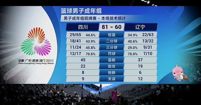 60-81!最终,辽宁省男篮全国锦标赛未能登上领奖台。铜牌争夺战中,他们以21分之差不敌四川国赛男篮,获得第四名。四川队获得铜牌。对阵辽宁队,周琦确实毫不留情,拿下16分和13个篮板。韩大俊最后一舞只得到5分和17个篮板。上一场半决赛,辽宁男篮输给广东队19分,四川队输给浙江队3分,造成不小的惊喜。这一次,两队只能争夺第三名。辽宁队主力后卫赵继伟因伤无法出战。杨明安排了高诗岩、付豪、袁帅、李晓旭和严周琪四人开始。王博派出蒋文、赵嘉仁、孙明辉、胡金秋、吴晓首发。可见两队都想击败对手登上领奖台,只有赢得这场战斗才能获得铜牌。杨守池打进两球,赵佳仁打进三球。随后两队打成5-5平。四川队打出5-0领先。高思燕连得五分将比分追成10-10。接下来的比赛,辽宁队虽然占据优势,但分差还是被强大的周琦弥补了。首节比赛结束,于泽辰三分命中,辽宁队以22-19领先3分。第二节两队打成平手。辽宁队连连失误,让四川队抓住机会取得领先。辽宁队跟不上,比分差距拉大。何长老韩德君无力抵挡周琦和胡金秋的双塔。确实,年轻人很猛。高诗岩领衔的辽宁队仅差一分追赶他。承敏熙紧急跳投得手,拿下两分。中场休息后,四川队以43-40领先3分。第四节两队打成24-18,四川领先6分。胡金秋拿下12分3篮板,周琦4投1中拿下6分5篮板。半场结束,辽宁队没有球员得分上双。换队再战,但辽宁队进攻并没有太大起色,比分难以追分。它总是变得更加困难。四川队抓住机会,爆发一波13-5的高潮,将领先优势再次扩大到两位数。看看辽宁队,实在是无能为力。怎样才能让老弱病残赢?第三节结束,四川队71-53领先18分。第四节,辽宁队还想追赶,可惜实力不强足够的。四川队将领先优势扩大到两位数。付豪一开始就五次犯规,内线更加无力。最终,辽宁队以60-81不敌四川队,无缘领奖台。四川队花费巨资才获得铜牌。只要满足就好。这是韩德君的最后一战,也是李晓旭的最后一战,或许也是高诗岩最后一次全国赛之旅。可惜他没能得到完美的结局,遗憾终生。从数据上看,四川全运男篮发挥非常出色,有四名球员得分上双。周琦9投3中,罚球11中8得到16分13篮板,胡金秋得到15分5篮板3助攻,孙铭徽得到15分4篮板10助攻,赵岩昊得到13分。辽宁队只有三名球员得分上双。高诗岩12投4中,罚球4中3s。他得到12分、2个篮板和7次助攻。付豪得到13分和5个篮板。于泽辰拿下14分,韩德君5投2中拿下5分17篮板。